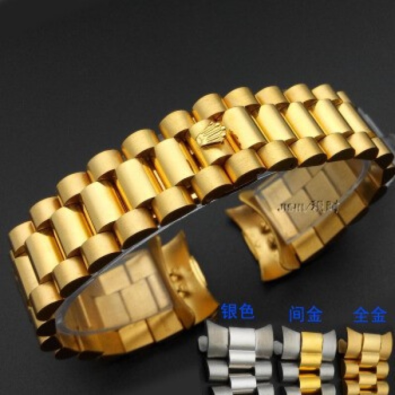 Adecuado para correas de cronometraje, adecuado para correas de acero con calendario Rolex, accesorios de reloj, tres cuentas, cadena de reloj, oro completo para hombre de 20 mm (2 piezas) * 2