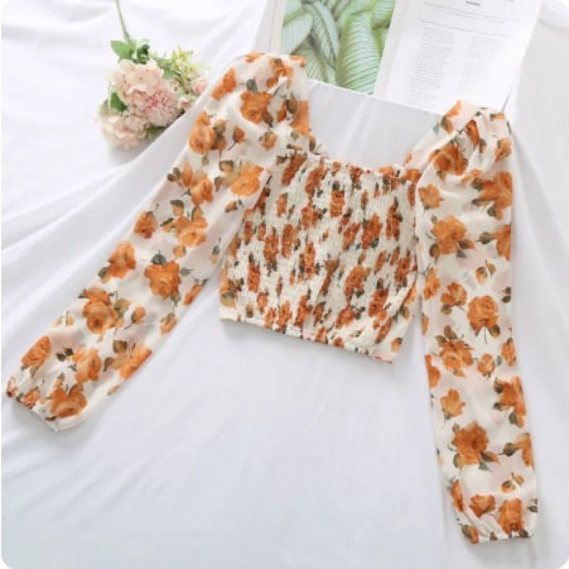 Aki20 Blaus untuk Wanita 2022 Reka Bentuk Baru Gaya Korea Segar Gaya Baju Chiffon Niche Slim Fesyen Semua-Perlawanan Puncak untuk wanita